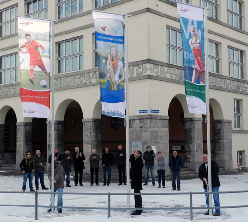 Mit Beginn des Schuljahres 2012/2013 sind die Kunst- und Sportklassen Thun in einen Neubau beim Progymatte Schulhaus eingezogen. Nun hat das von Swiss Olympic als Talent School anerkannte Ausbildungsangebot ein gut sichtbares Symbol erhalten: Drei Fahnen stehen ab heute beim nahen Progykreisel - mit je einem Sujet aus dem Bereich Kunst und zwei Sujets aus dem Bereich Sport. Sie sollen auch Werbung für den bildungsstandort Thun sein.