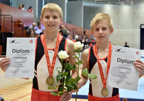 Im Mannschaftswettkampf Programm 4 landen Jan Baudenbacher, zusammen mit seinem Mitturner Louis Stirnimann, sogar auf dem Podest und holen sich den 3. Platz!